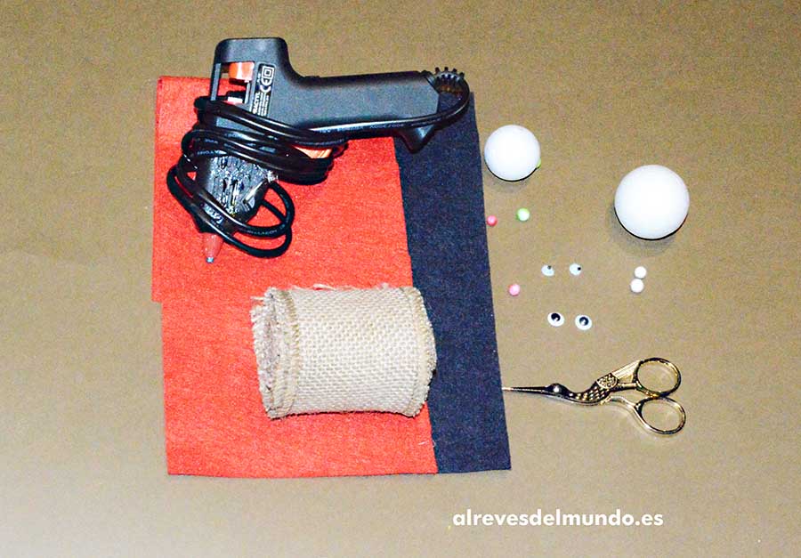 - Una vez que tengamos los muñecos de nieve hechos, los pegamos al saco del servilletero