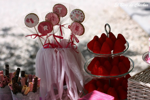 Hoy seguimos con las mesas dulces de comunión, esta era para Iratxe, la hija de Susana, una amiga del cole, que me hizo mucha ilusión preparar, ya que nos conocemos desde que eramos muy pequeñas.