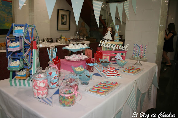 El sábado comulgó Raquel, mi sobrina postiza a la quiero un montón y la que un día me dijo que su mesa dulce quería que fuera azul y rosa. Así que me puse a la carga...