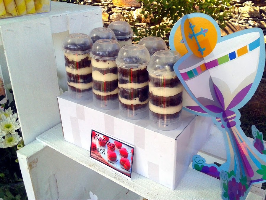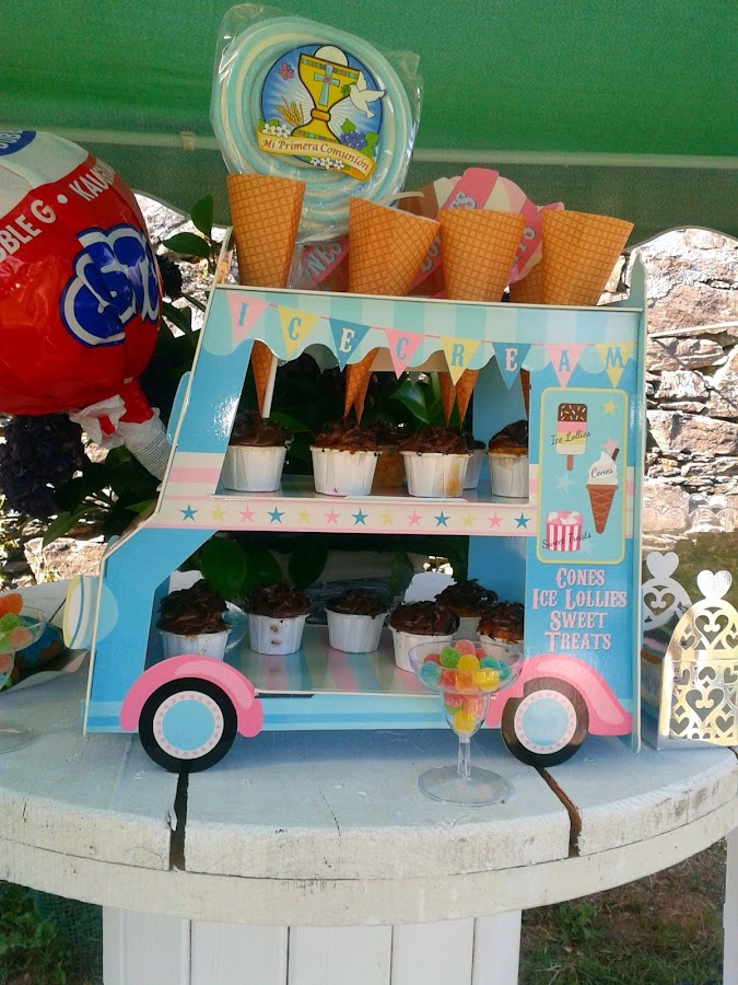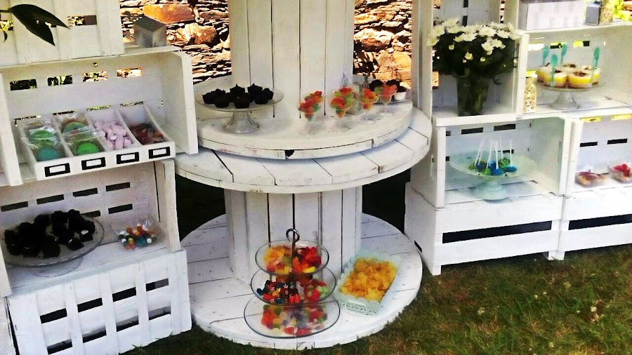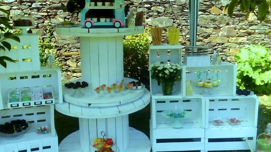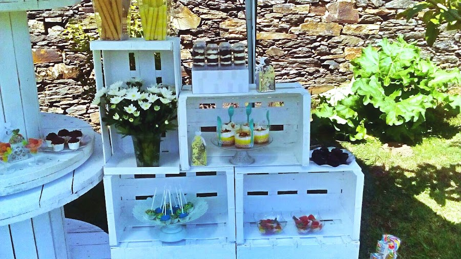 Hoy va de fotos!!!! Os dejo la mesa dulce de la comunión de Roi. Había muchísimas golosinas, galletas personalizadas, minicupcakes de avellana y Nutella®, vasitos de lemon curd y merengue, cake pops, donuts, brownies de oreos extrachocolateados y tartaletas de oreo con toffee y chocolate, todo en un entorno al aire libre precioso y con una decoración muy vintage y chic.