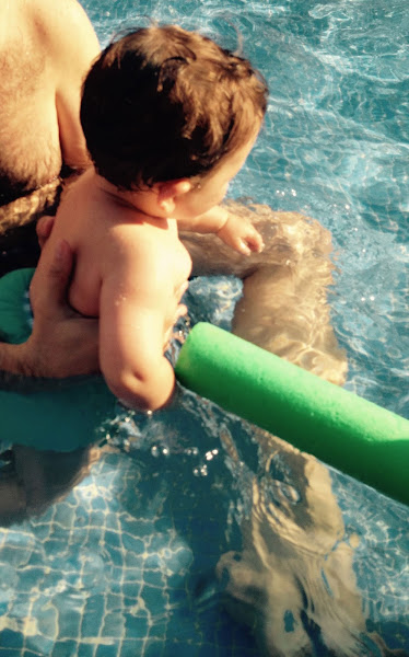 La primera vez que metimos a Gael en el agua empezó a temblar y llorar desconsolado y alzar las manos para que yo lo cogiera (era su padre el que se metió con el). Gael 1 - Piscina 0.