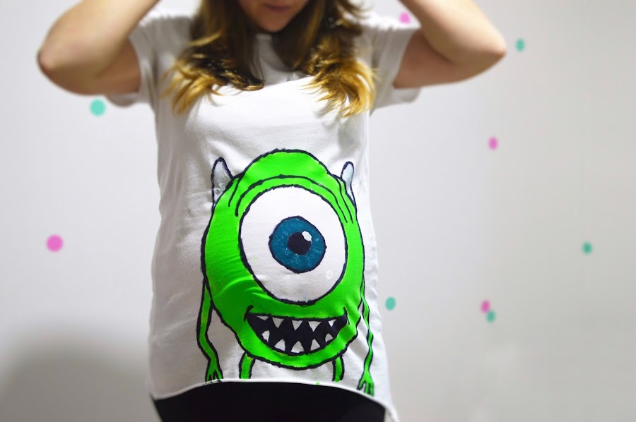 Es mi primero Carnaval embarazada y me apetecía mucho darle protagonismo a la tripita, al ver la pintura verde. mi querido "Ojito Saltón" de la pelicula Monstruos S.A se coló en mi cabeza....¡era perfecto! Tan redondito, tan entrañable.... tan divertido.