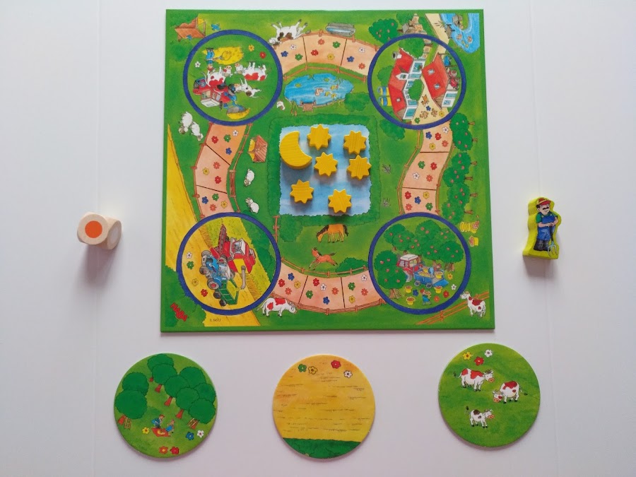 ¿Cuándo acaba el juego? La partida termina cuando el granjero vuelve de nuevo a casa después de haber realizado sus 3 labores, antes de que la luna haya aparecido en el cielo. Entonces, todos los niños ganan. Sin embargo, si la luna aparece antes de que el granjero esté en casa entonces todos los niños pierden y tendrán que volverlo a intentar.