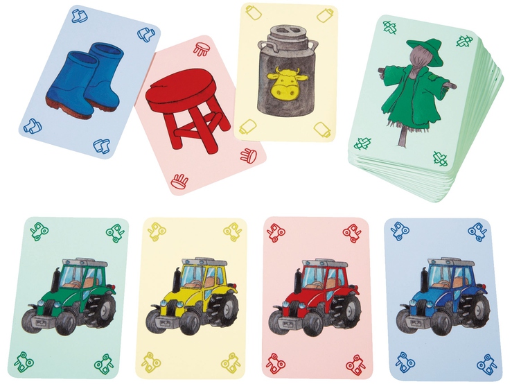El cuarteto de la granja (+4): el objetivo del juego es conseguir formar cuartetos de cartas con el mismo motivo. Por turnos siguiendo el sentido de las agujas del reloj. Empieza el jugador que más recientemente haya ordenado su habitación o el jugador más joven.