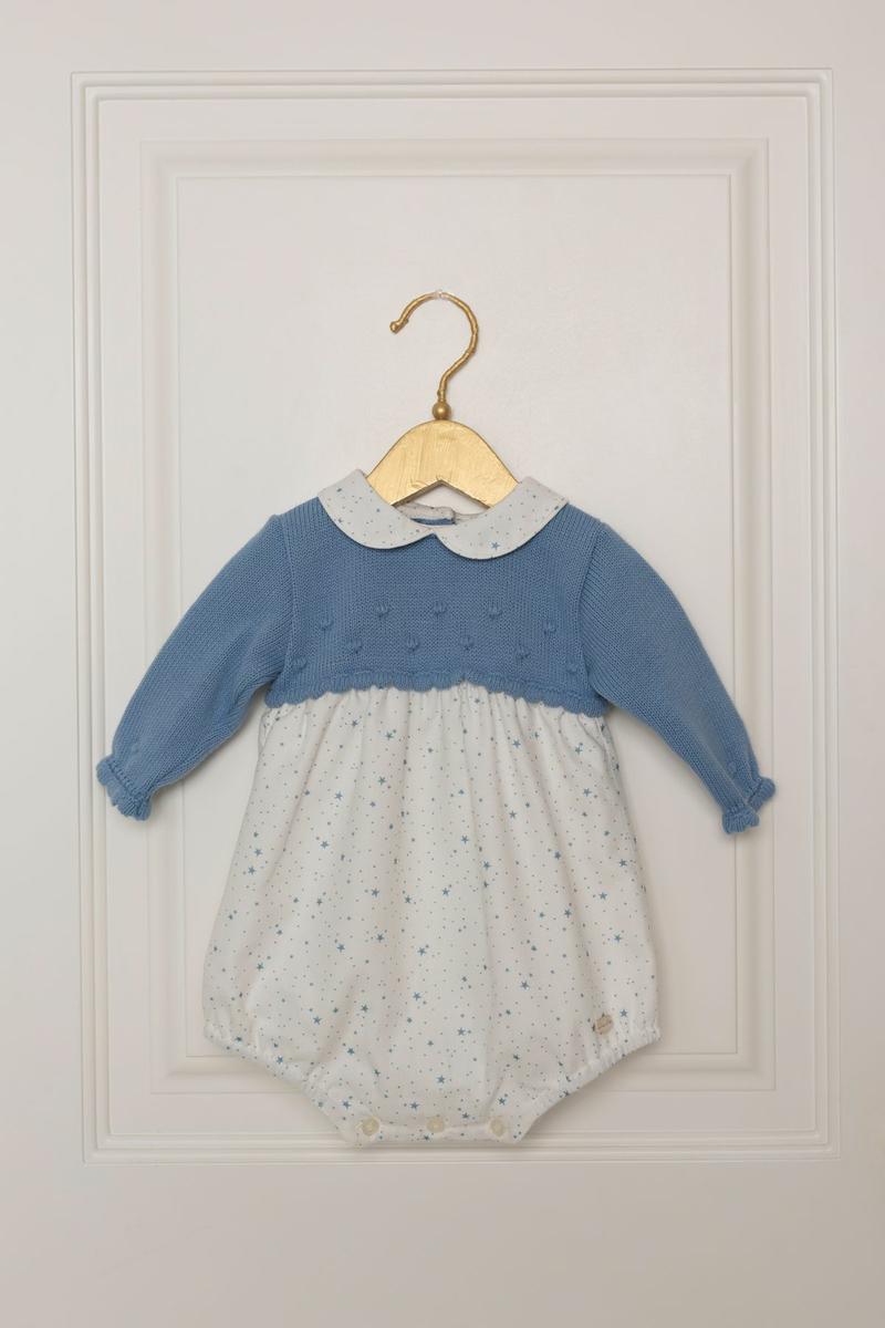Mi debilidad son los peleles invernales como el que te enseño a continuación, con cuello bebé, tejido de punto en la parte superior y cuerpo de piqué estampado.