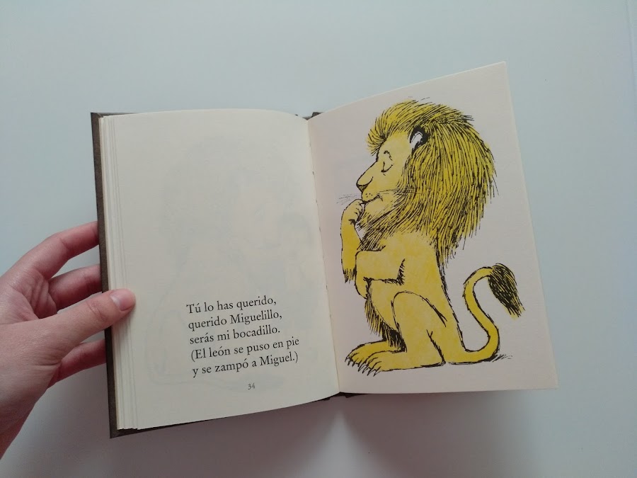 En este título, Sendak nos presenta una fábula en la que un niño, llamado Miguel, tiene que pasar por la boca de un feroz león para darse cuenta de que en esta vida el amor y la gente a la que quieres es muy importante.