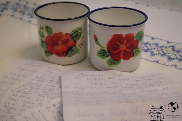 Y precisamente de ella, de su casa, me he traído estas preciosas tazas, que forman parte de mis recuerdos de niña en esas vacaciones tan especiales que pasaba a su lado.
