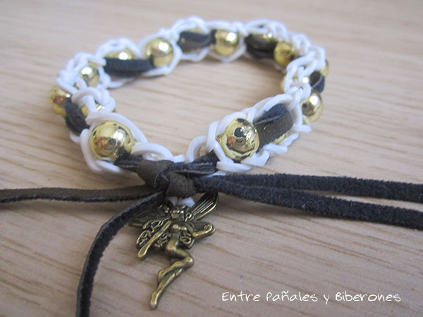 Pulsera con abalorios, dos lazos de ante y un pequeño adorno (vista trasera)
