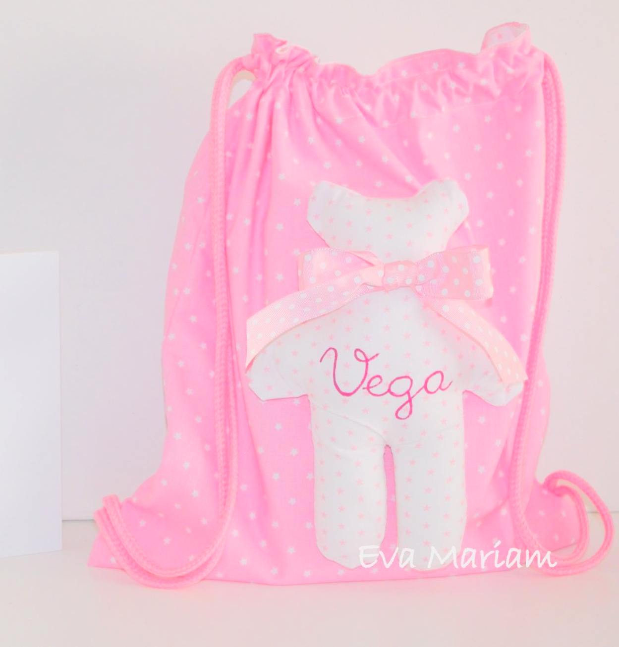 Mochilas tipo saco, estas de EVA MARIAM y son ideales, las usare para ir a natación, ademas tiene bolsita de almuerzo a juego!