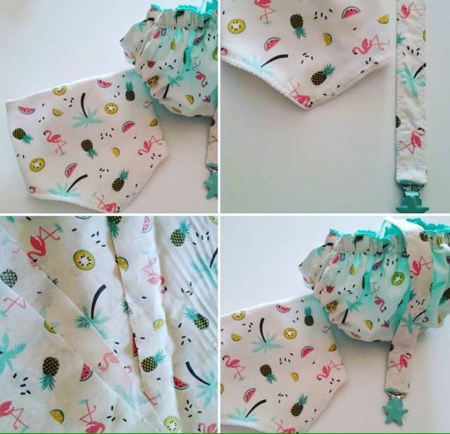 Y no solo se dedica a hacer cubrepañales, hace bandanas, chupeteros, petos, camisetas…propónle a Briggite y ella hará realidad tu idea.