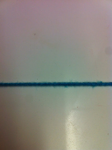 Segundo paso: (aquí es donde necesitamos ayuda). Pedimos a alguien que coja de un extremo de las hebras, mientras que nosotros cogemos el otro y nos colocamos cada uno en una punta, sin llegar a tensar el hilo (porque se nos escapará seguro y vuelta a empezar). Entonces, comenzamos a retorcer el hilo, en direcciones opuestas, cada uno hacia un lado, de forma que quede así: