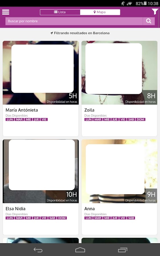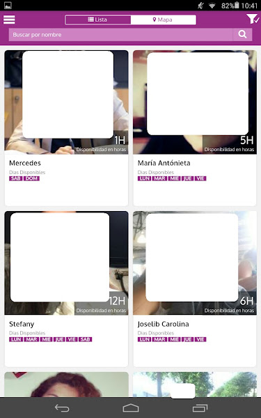 La app nos permite ver los resultados en un mapa o en una lista. Al seleccionar a alguna de las mamás, veremos sus datos y la app nos permitirá ponernos en contacto con ellas.