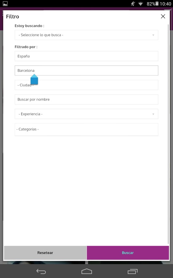 Arriba a la derecha encontramos un símbolo que nos permite acceder a un menú dónde poner parámetros para realizar una búsqueda. En mi caso, he buscado mamas en Barcelona.