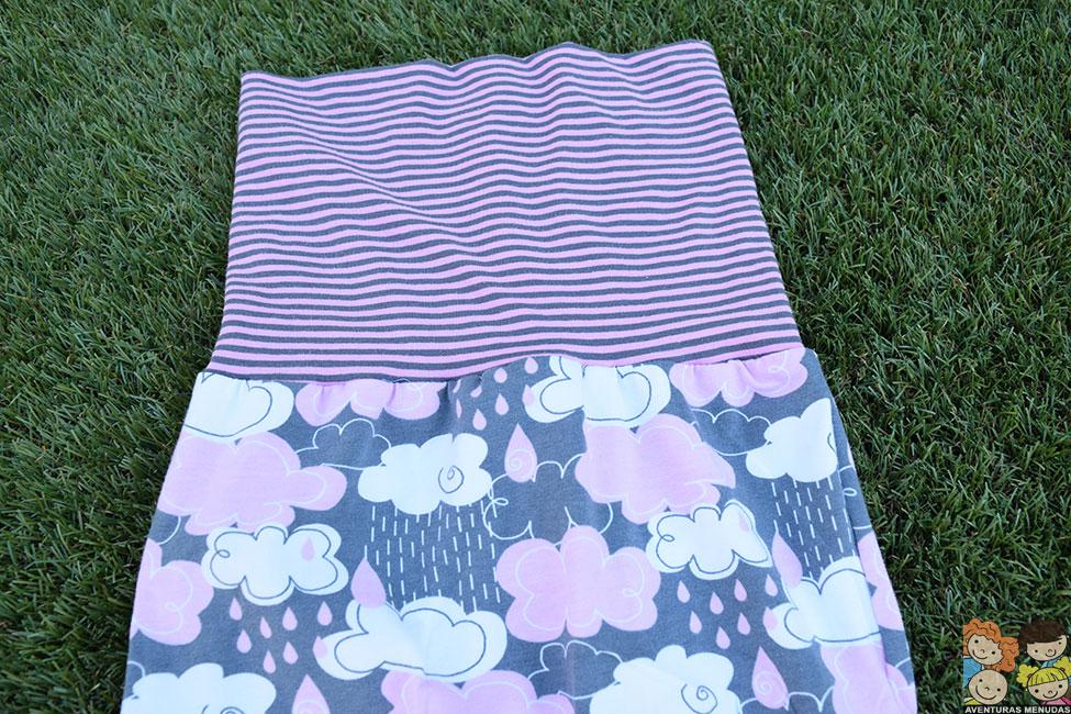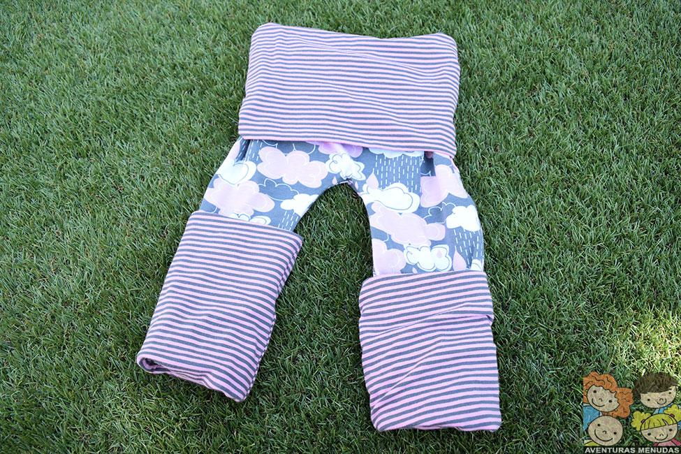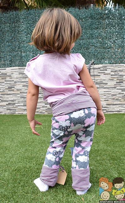 En este modelo evolutivo, las partes que podéis manipular para adaptar el pantalón al tamaño del niño o niña son mayores que en el jogger, ya que están pensados para ello. La cintura puede estar completamente estirada o ir doblando hasta conseguir el tiro necesario para el peque. Lo mismo con los puños, cuanto más recogidos, la prenda queda más corta y viene bien a niños más pequeños.