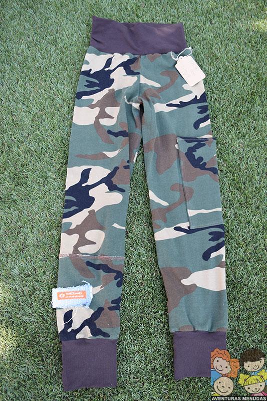 La idea de que sean evolutivos es chulísima, porque a la mínima que los peques cuiden un poco la ropa, crece con ellos mínimo durante todo el año. Y si, al ser una tela bastante resistente, el peque no la rompe con el uso, incluso al año siguiente, seguiríais teniendo pantalón para rato. Una de las características de esta marca, es una especie de parche en el culete para los pantalones. En nuestro caso, no lo hemos puesto, pero les da mucha personalidad y los hace muy de la marca Monkeyloones. Mirar que bonitos: