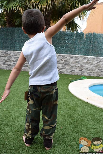 Luego, a pesar de llevar la cintura doblada o los puños doblados, el tipo de tejido es tan genial y adaptable, que ni se nota. Es increíble lo bien que le sienta a mi peque, siendo que al estar más delgadillo, casi todos los pantalones le están anchos. Mirar que pedazo de modelo tengo… jajajaja