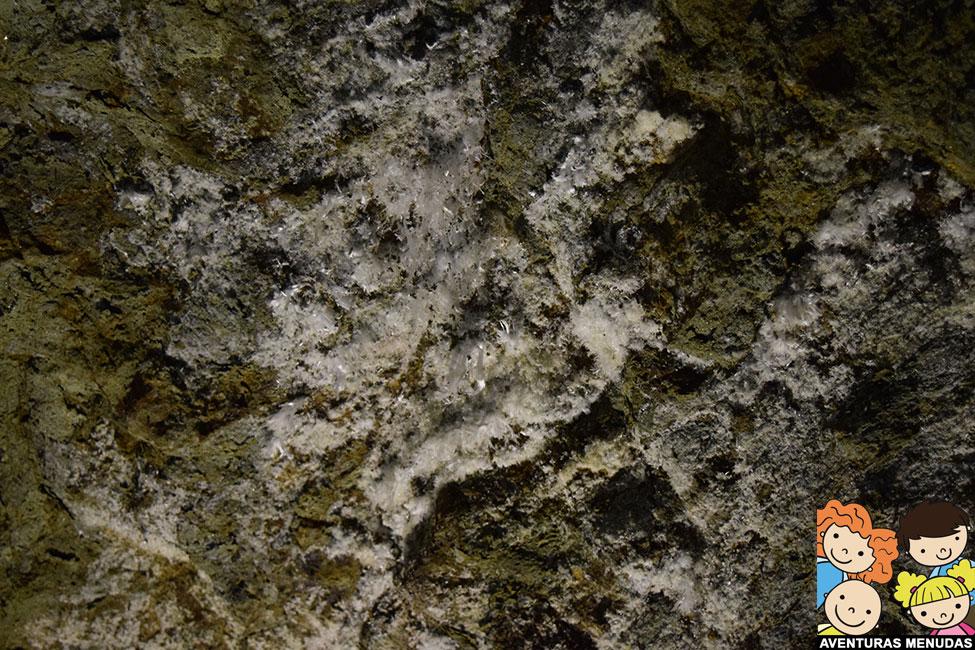 A continuación, el guía nos dirige dentro de la mina. Vamos pasando por diferentes estancias, donde se ve cómo se extraía el mineral, en este caso la pirita, como se transportaba con vagonetas de una zona a otra, como se sacaba al exterior, etc.