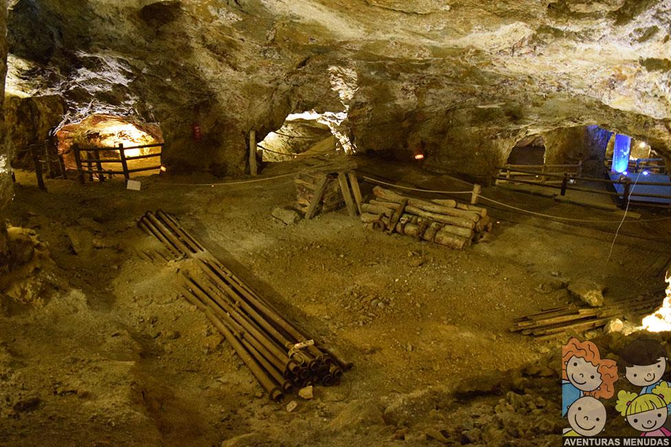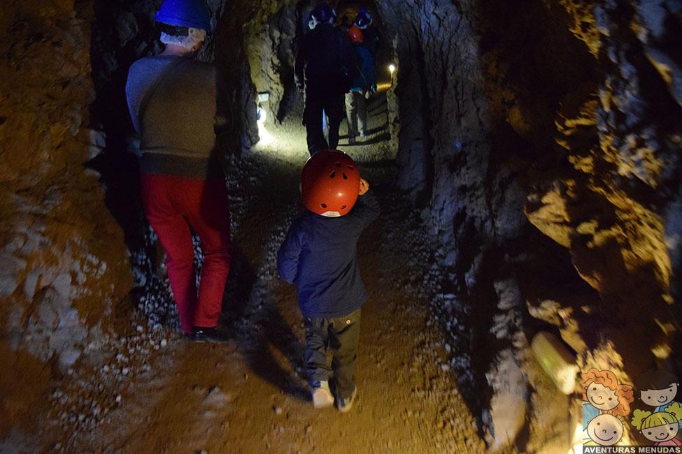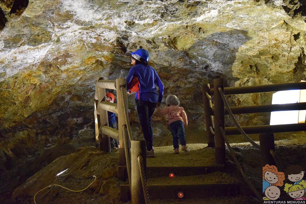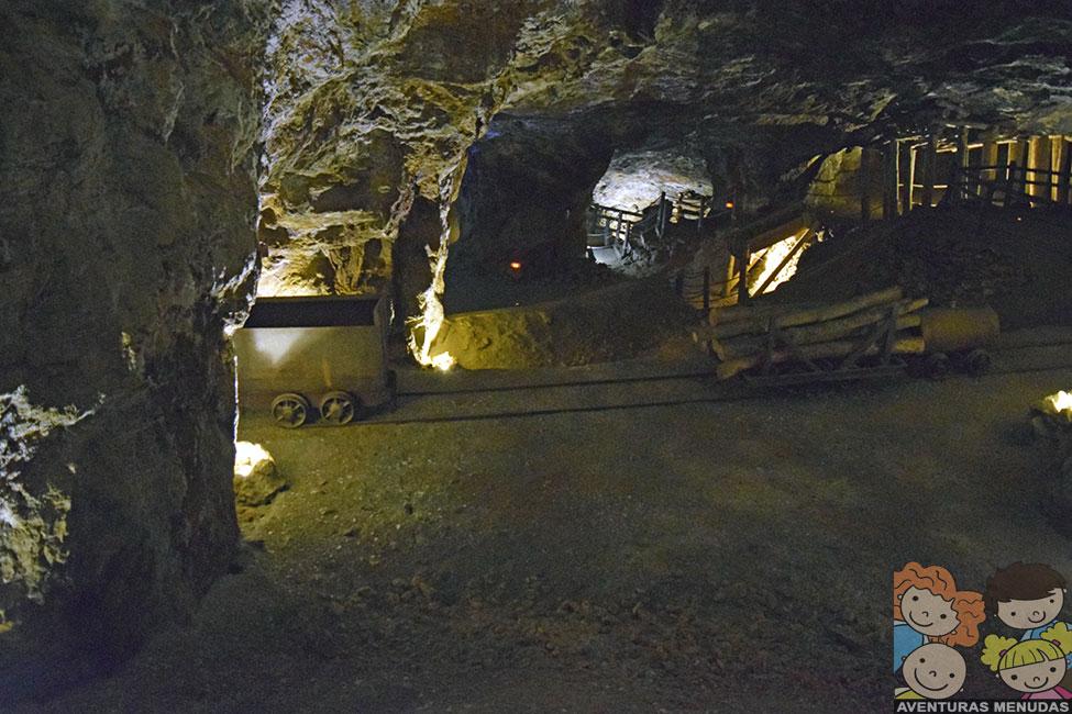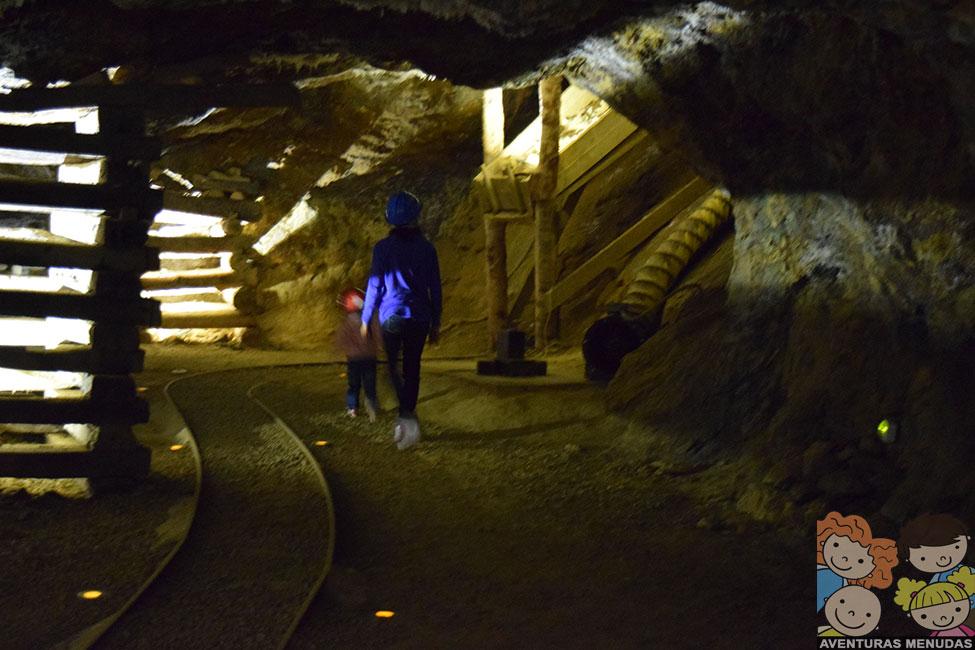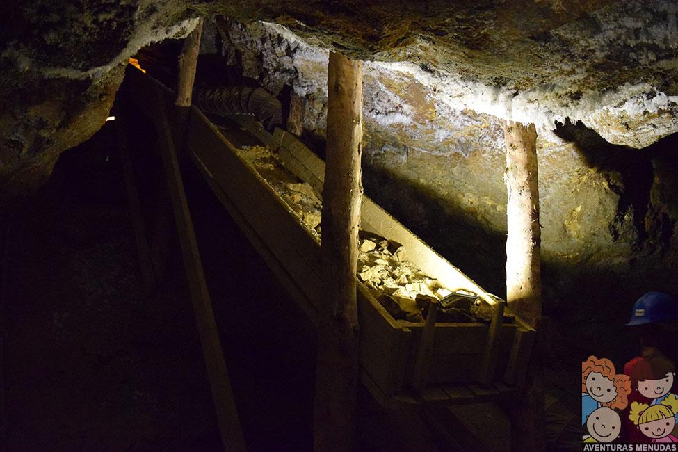 También nos explicaron como se pasaba el mineral entre los diferentes niveles de extracción y cómo se llevaba, a través de las vagonetas, hacia el exterior. En algunas zonas había muñecos simulando a los mineros, cosa que a los niños les llamó mucho la atención, así que iban buscándolos por todas partes.