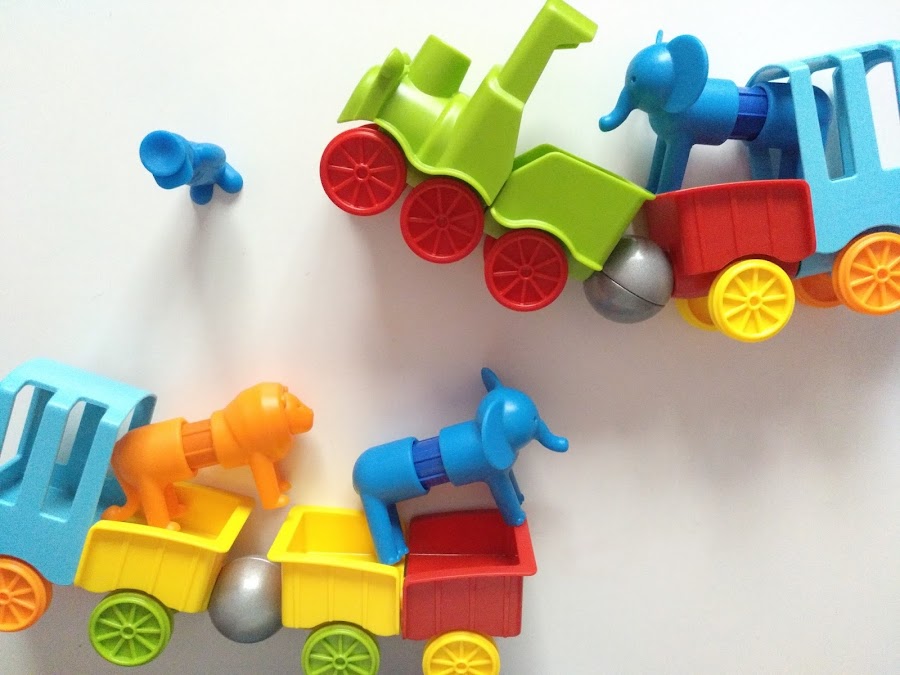 Es un juego de construcción magnético con figuras realistas (piezas de encaje para formar animales y piezas para formar los vagones de un tren) que se prestan al juego simbólico una vez terminados