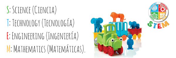 Por ejemplo, MY FIRST ANIMAL TRAIN, toca las siguientes áreas científicas: ciencia (a través del juego magnético), biología (por los animales, en este caso dos elefantes y un león).