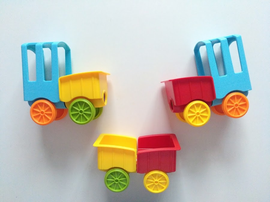Podemos reforzar o conocer los cuatro colores básicos (rojo, azul, amarillo y verde). Tanto los vagones, como los animales son de estos colores. Podemos pedir a los peques que nos señalen las ruedas de un color determinado, por ejemplo, las ruedas verdes. O que monten el vagón de color azul.