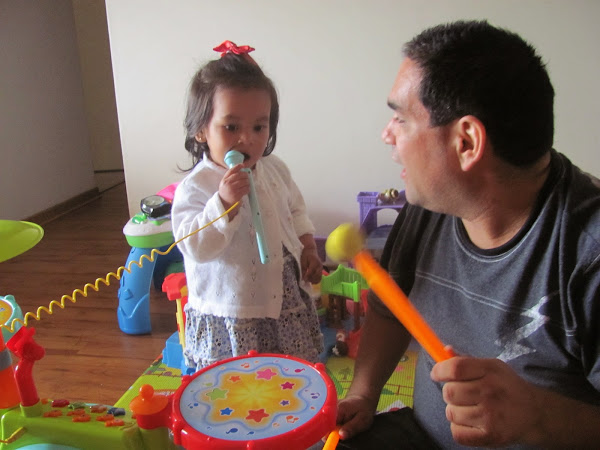 Esta segunda navidad nuestra hija ya puede disfrutar mejor de los regalos, ahora que ya tiene un poco más definidos los gustos podemos saber que regalarle, aunque cualquier regalo es bueno sabemos hacia donde está apuntando. Algo que le gusta mucho y con lo que se entretiene bastante es con los muñequitos de Little People de Fisher Price y en estas fiestas nos preocupamos de que recibiera algunos de esos para aumentar su colección. Pero no siempre podemos recibir lo que se pide y este año recibió cosas relacionadas con la música y lo que me pareció genial fue una batería muy completa con botones, luces y hasta con un micrófono, le encanta golpearla y escuchar los sonidos que se generan. Mary decidió regalarle un scooter, aunque no está en edad de usar una Mary quiere desarrollar mucho más su sentido del equilibrio y a la bebe le fascina este medio de transporte, en el condominio varios niños tienen y ella los utiliza cada vez que puede.