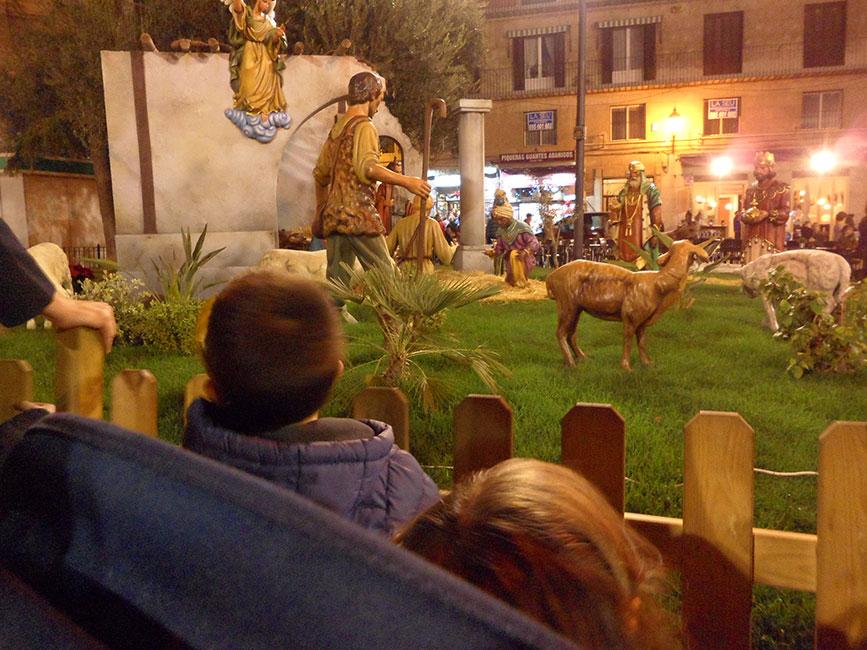 También nos encontramos con un belén gigante y junto a él un grupo de chicos y chicas cantando canciones a coro. Bua! Que bonito y que navideño. Muchísima gente les rodeaba, pero no era para menos, porque además de cantar bien, tenían pequeñas coreografías con movimientos sencillos de manos o del cuerpo todos a la vez, que lo hacía todavía más bonito. Los peques, claro está se quedaron escuchando y mirando un buen rato.
