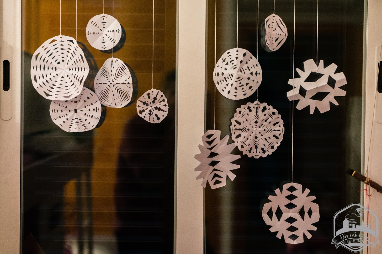 Como por Navidad nos gusta decorar la habitación del cuarto de Sunflower (el año pasado la decoramos con un pueblo y un bosque de papel), este año hemos colgado las neulas en una rama en su ventana y nos encanta el resultado. ¿Y a ti?