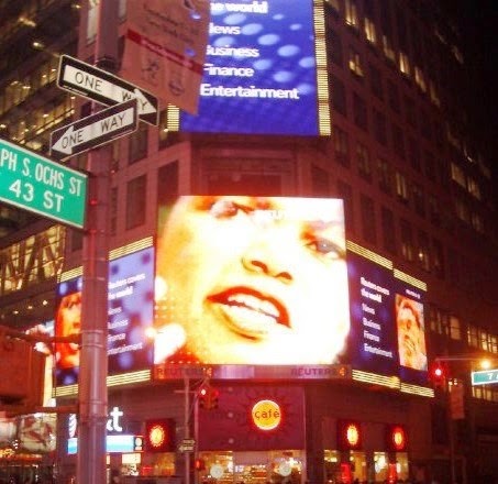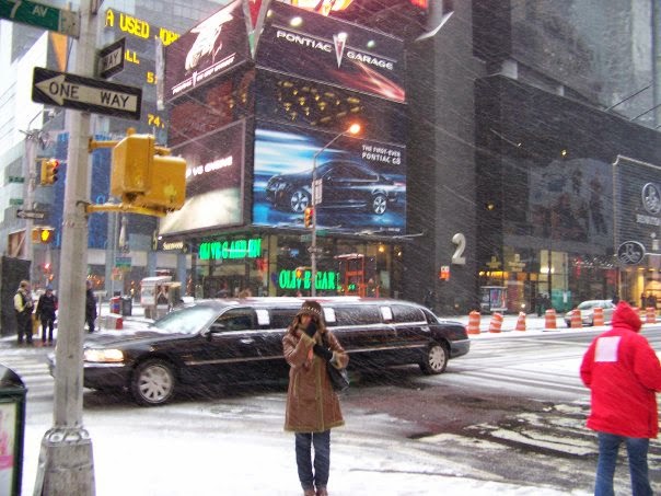 Las maletas ya empezaban a salir, recogimos las nuestras y salimos directos a buscar nuestro chófer. Ahí ya empezamos a flipar. Teníamos contratado coche hasta el hotel, sin más, pero cuando llegamos nos estaba esperando una limusina hummer, espectacular y ahí ya se me puso una sonrisa tonta en la cara que no apeé hasta que llegué de vuelta a España. Las luces de Nueva York, es lo que más te impacta según te subes al coche y este se dirige a la ciudad, porque en invierno a las 4.30 de la tarde ya es noche cerrada y empiezas a ver esas imágenes de la ciudad que te has cansado de ver en miles de películas y entonces el coche se mete en las calles de la ciudad y te ves de pronto en Times Square, las luces, los neones, el tráfico, la gente... Llegamos al hotel, muy muy cerquita de Times Square, rápido cogemos la habitación y a la calle. Son poco más de las 4.30 pero ya es de noche y la primera percepción según salimos del hotel, son luces, neones, gente, mucha gente, ruido.