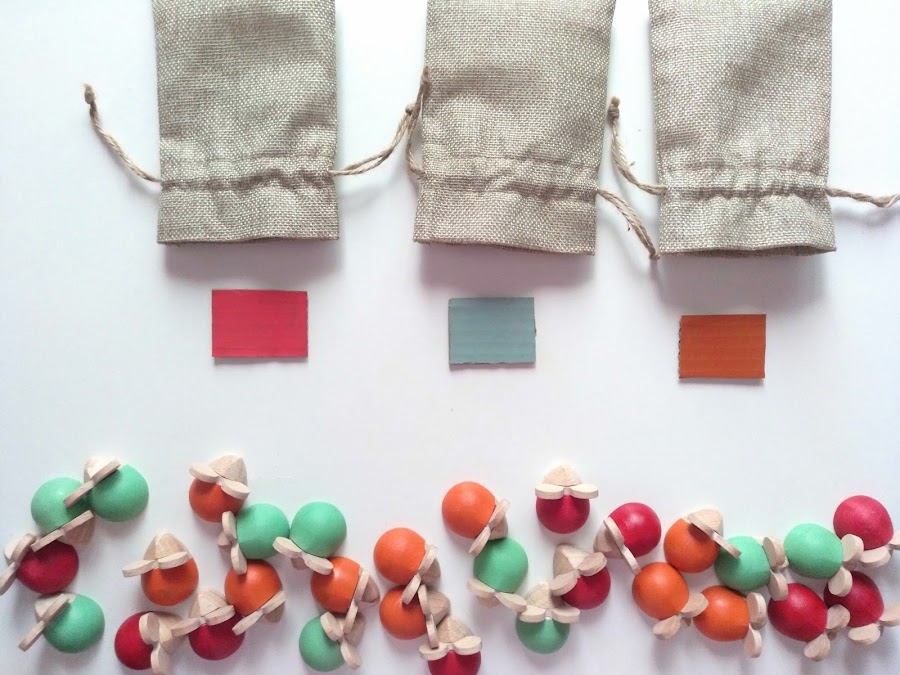 Los peques debían ir introduciendo en cada bolsita todos los ratones del color que el cartón indica.