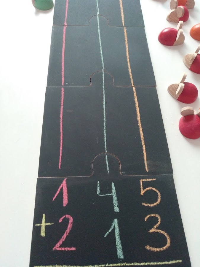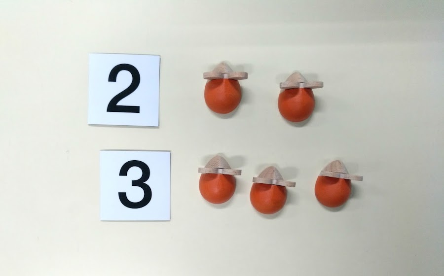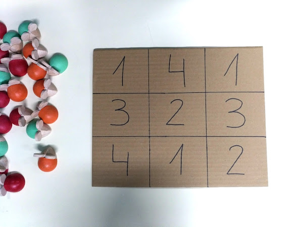 También podemos hacerlo igual, pero en vertical. Colocando los números arriba y pidiendo a los peques que coloquen debajo del mismo tantos como correspondan.