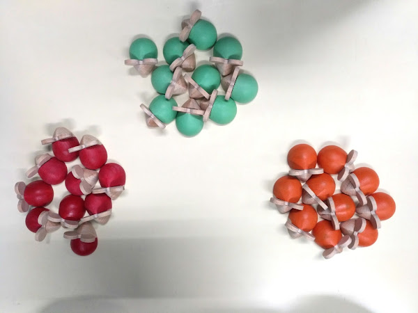 También podemos trabajar la seriación. Haciendo series de un solo color (rojo, rojo, rojo...) o combinándolos (rojo, naranja, rojo, naranja...).