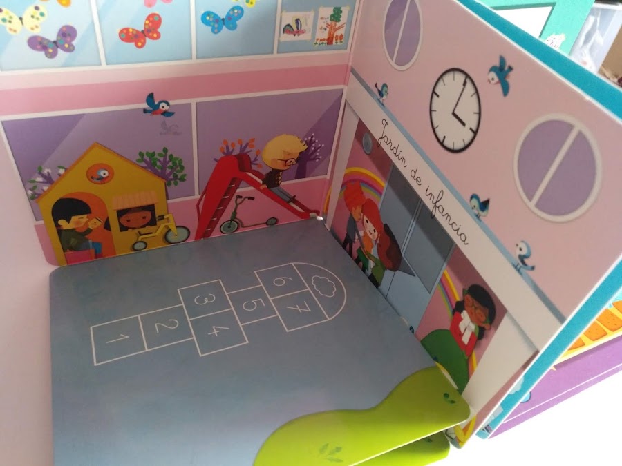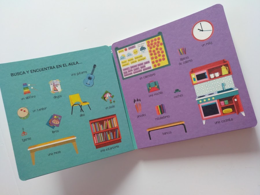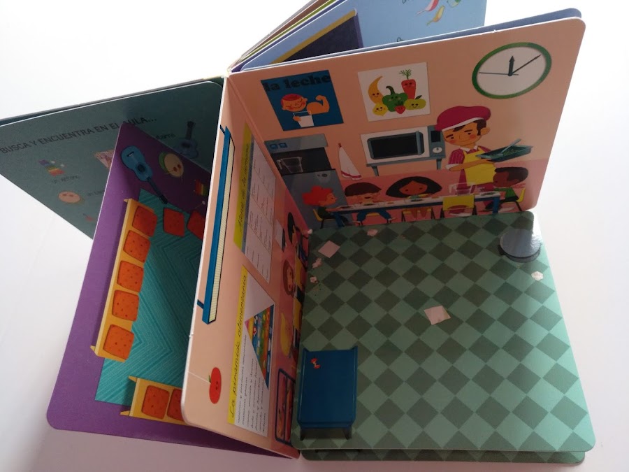 Hoy os enseño un librito de busca y encuentra ideal para la vuelta al cole. ¿Sabéis por qué? Porque se convierte en una escuela al desplegar sus páginas.