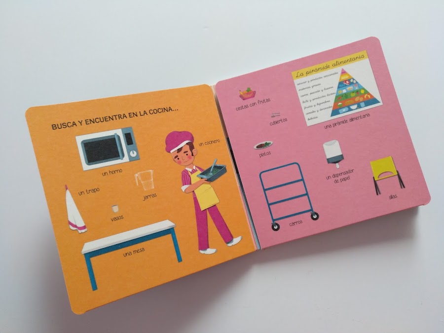 Como veis es un libro fantástico, que da muchísimo juego, ideal para los más pequeños. Está recomendado de 0 a 4 años, pero como maestra de PTAI, ya os digo yo que lo voy a exprimir al máximo y lo utilizaré también con peques más mayores para trabajar vocabulario, descripciones, memoria y atención.