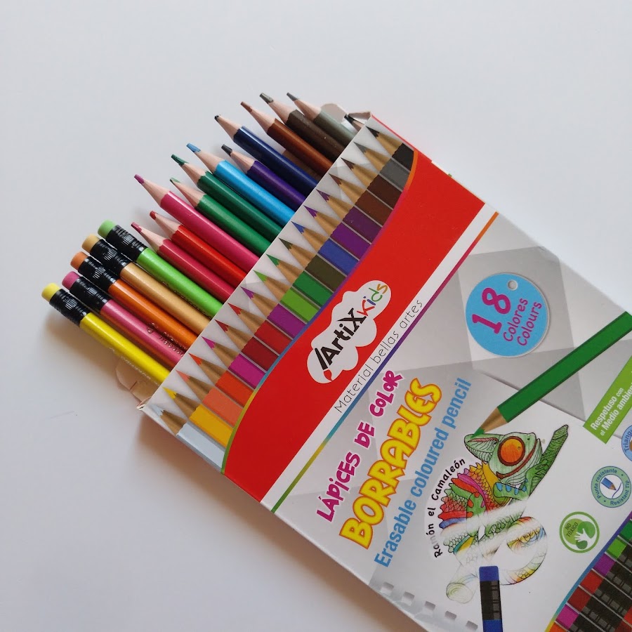 LAPICES DE COLORES BORRABLES 18U. Son respetuosos con el medio ambiente, no tóxicos, con punta resistente, cuerpo triangular y de fácil perfilado. Los colores son muy bonitos y que se puedan borrar es un plus. Nosotros ya los hemos probado y os pudo decir que se borran perfectamente, sin emborronar.