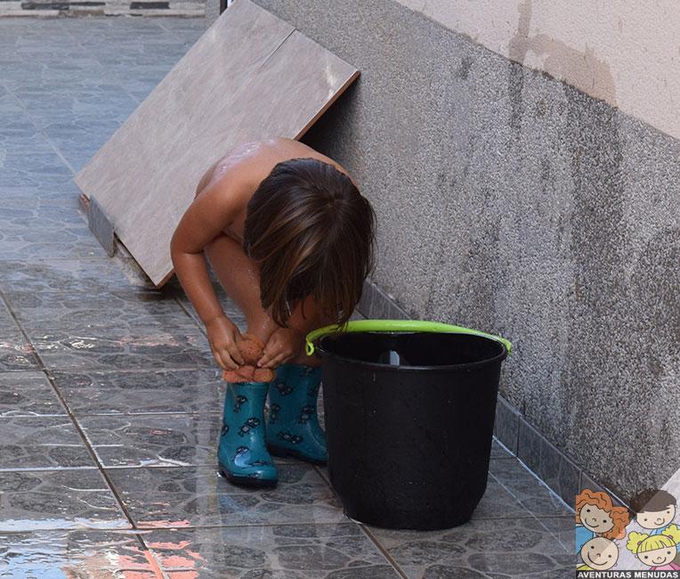 O incluso ver si cabe la esponja por la bota de agua o cuanta agua cabe dentro de las botas al escurrirla, jajajaja….