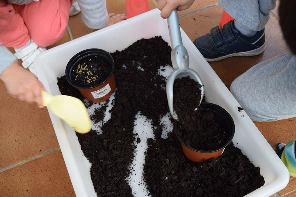 A continuación, terminaron de rellenar de tierra la maceta, tapando las semillas.