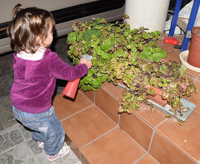 Cuando fuimos en navidades a Expojove, que es como una feria navideña para hacer actividades, talleres, juegos, etc., todo para niños, plantaron una lechuga en una maceta y se la trajeron a casa. Cuando hicieron la actividad allí no usaron una regadera para ponerle agua, sino que usaron un pulverizador, para no ahogar a la lechuguita recién plantada.