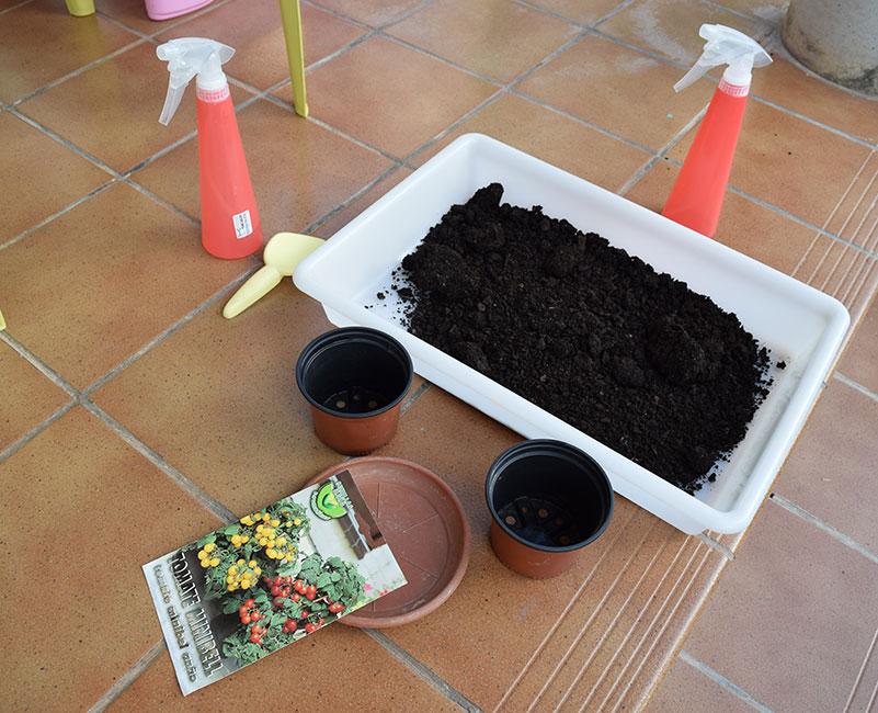 Viendo el interés, decidí que podían incrementar su huerto plantando unas semillas de tomate también en una maceta, al igual que la lechuga. ¡¡Menuda ensalada nos podemos hacer si todo crece bien!!.