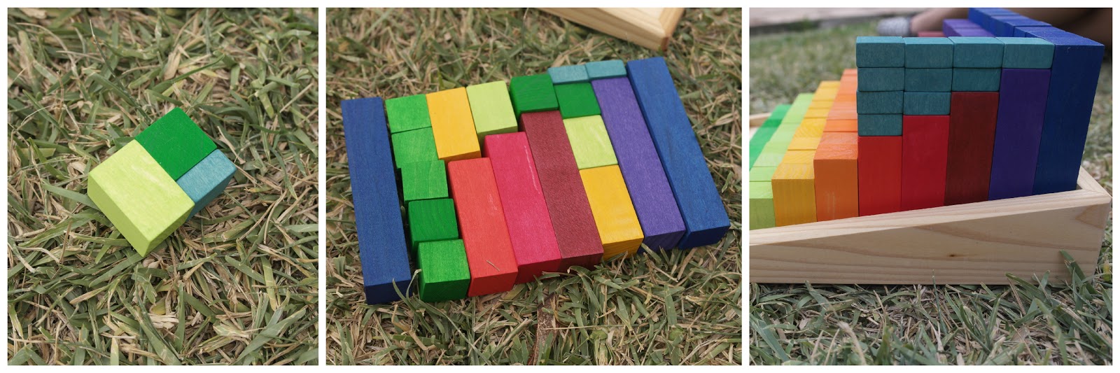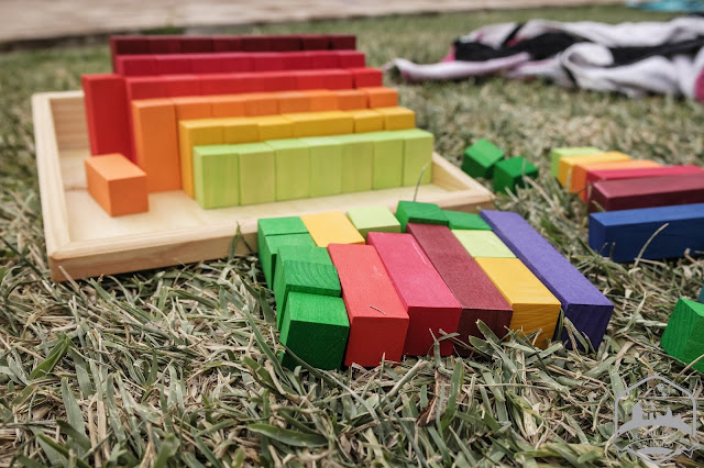 Los bloques escalonados de Grimm’s me tienen enamorada. Porque no solo son un material de construcción y de juego simbólico fantástico de inspiración Waldorf. Sino que sus aplicaciones para el aprendizajede las operaciones aritméticas, composición y descomposición de números y muchos más conceptos matemáticos son increíbles.