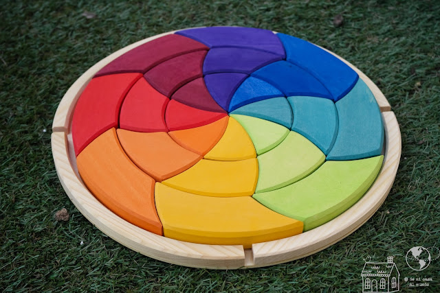 Este año hemos jugado horas infinitas con el puzzle mandala Goethe, también de la marca alemana Grimm’s. Los puzzles de madera Waldorf plantean un desafío al niño/o que debe ser capaz de encontrar un orden armónico en los colores y las formas de sus piezas.