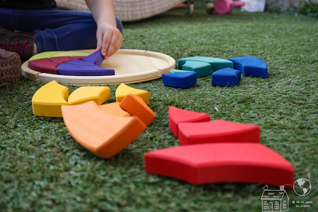 Ya sabes que el arcoíris grande es de nuestros materiales de juego favoritos (te he hablado de él aquí o aquí), pero no lo considero como novedad porque lo tenemos hace ya un par de años.