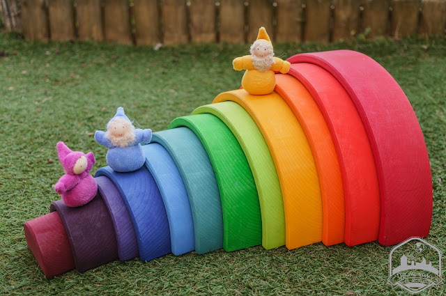 Este año hemos descubierto también otros materiales de juego de inspiración Waldorf que nos han ido acompañando como las enanitos y enanitas de Grimm’s, ideales para dar vida a las construcciones.
