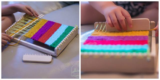 Sus favoritos: el telar pequeño para tejer bolsitos o mantitas para sus muñecas, y el telar de estrella para hacer pulseras.