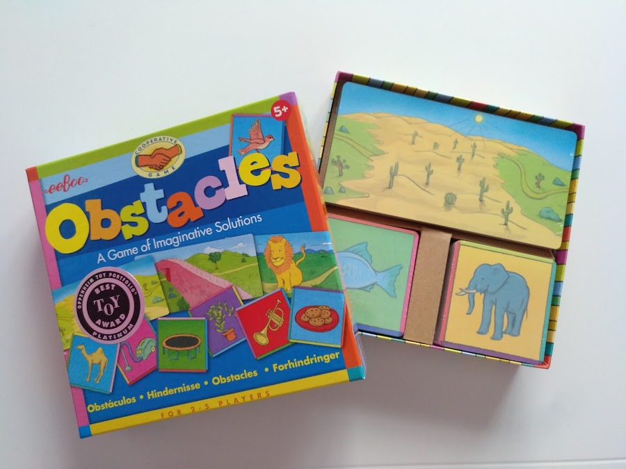 Se trata de Obstáculos Eeboo de TocToys, un juego de soluciones imaginativas. Está recomendado de 2 a 5 jugadores a partir de 5 años, pero mis peques a partir de 4 años han jugado sin problema.