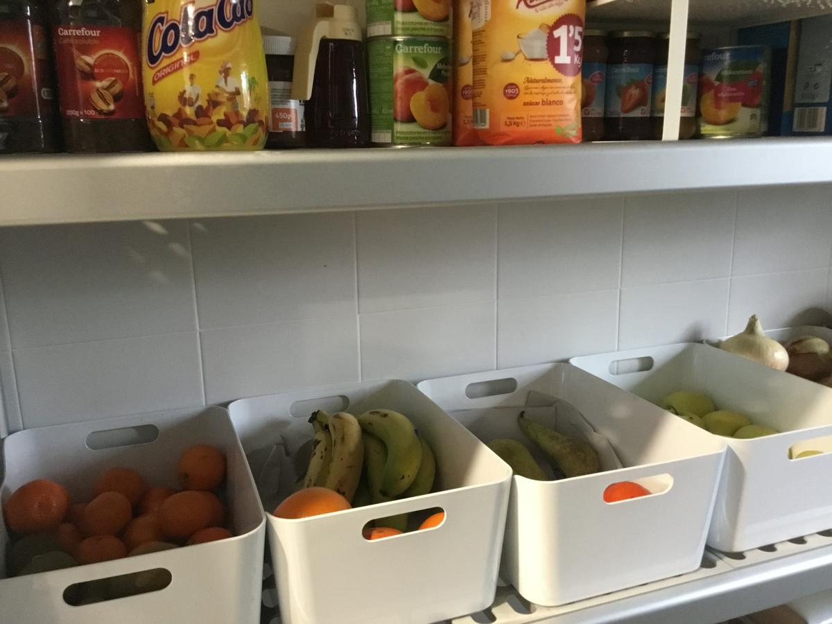 Poca gente tiene la suerte de tener una despensa de este tamaño, pero la mismas cajas sirven para un armario.