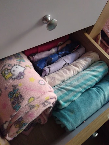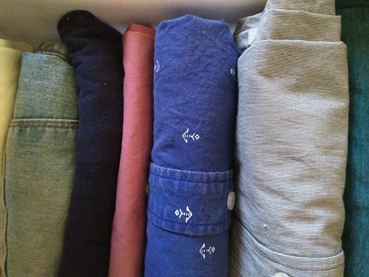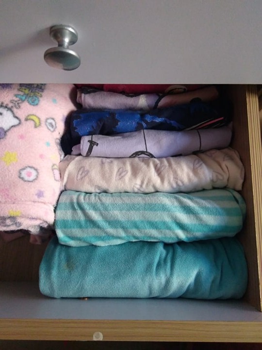 Si hay algo que realmente me fascinó al ver el primer capítulo de esta serie, fue el doblado de la ropa. Inmediatamente abrí mis cajones, saque toda la ropa y comencé a doblar según enseña Marie. Fue sorprendente. Siempre tuve dificultades para que la ropa me cupiera en lo que consideraba cajones demasiado pequeños. La misma cantidad de ropa, doblada de esta manera, ocupa una cantidad menor de espacio, y ahora los cajones que un día me parecieron pequeños, me resultan grandes. Además, esta manera de doblar permite tener a la vista cada opción en nuestro cajón, lo que evita que terminemos revolviendo todo en busca de alguna prenda.