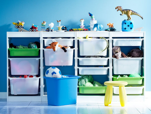 Y es que a veces no os paráis a pensar la cantidad de juguetes que reciben nuestros hijos?? donde está el límite que pasa de ser suficientes a ser demasiados? Porque yo siempre me dije no, no, yo no le voy a dejar muchos juguetes en casa, pero cuando me he dado cuenta ¡horror! me he visto envuelta en una maraña de juguetes repartidos por toda la casa. Y si, me canso de repetirle cada dia que recoja, y la mayor parte de las veces mis peticiones caen en saco roto,.... no se si a muchas os pasa ni que hacéis al respecto... ayer toqué fondo,... cogí y le saqué todos los juguetes de su cuarto y hice una selección exhaustiva de que juguetes se quedaban y otros salían por la puerta en bolsas de basura, algunos los llevaré a estas asociaciones que recogen juguetes para gente sin recursos, además pronto llega Navidad. He de decir que repetí la misma acción en el cuarto de los juguetes, en ese cuarto tengo un cajón de tela grande también de IKEA (viva el universo IKEA para organizar y guardar juguetes es ideal) y le dejé los cuatro últimos juguetes que recibió el mes pasado en su cumpleaños y cuatro cositas mas con las que mas juega, el resto todo en bolsas para la basura y para dar. Y que bien hice, que a gusto me quedé y lo mejor de todo de ver todo así de despejado es que Alicia no echa de menos ningún juguete, por eso sigo manteniendo la idea de que a veces se les da por demás.