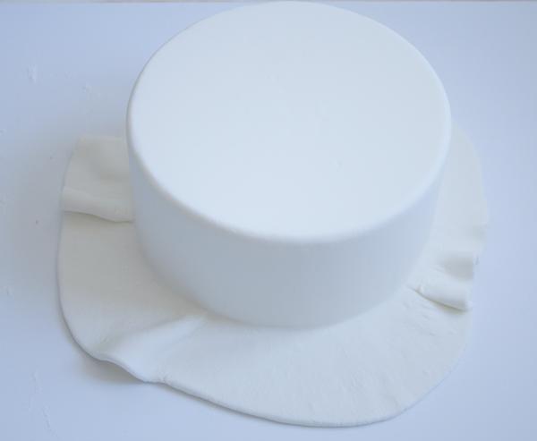 Levantamos la Masa Elástica que hemos previamente estirado, nos ayudamos con el rodillo y cubrimos la maqueta como si fuera la torta.