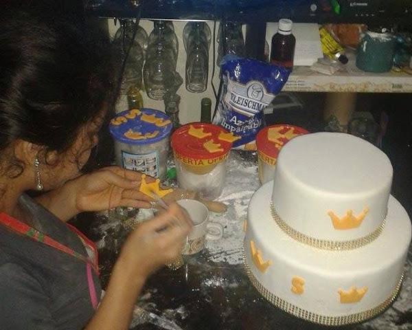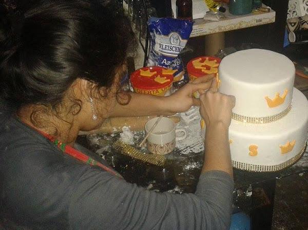 Ahora toca dar los últimos toques colocar los adornos echos con fondant y para eso utilizamos la goma tragacanto, porque utilizo fondant y no masa elástica? pues porque el fondant es mas manejable, suave y no se hace agua tan rápido como la masa, es mucho mas trabajable a mi parecer.